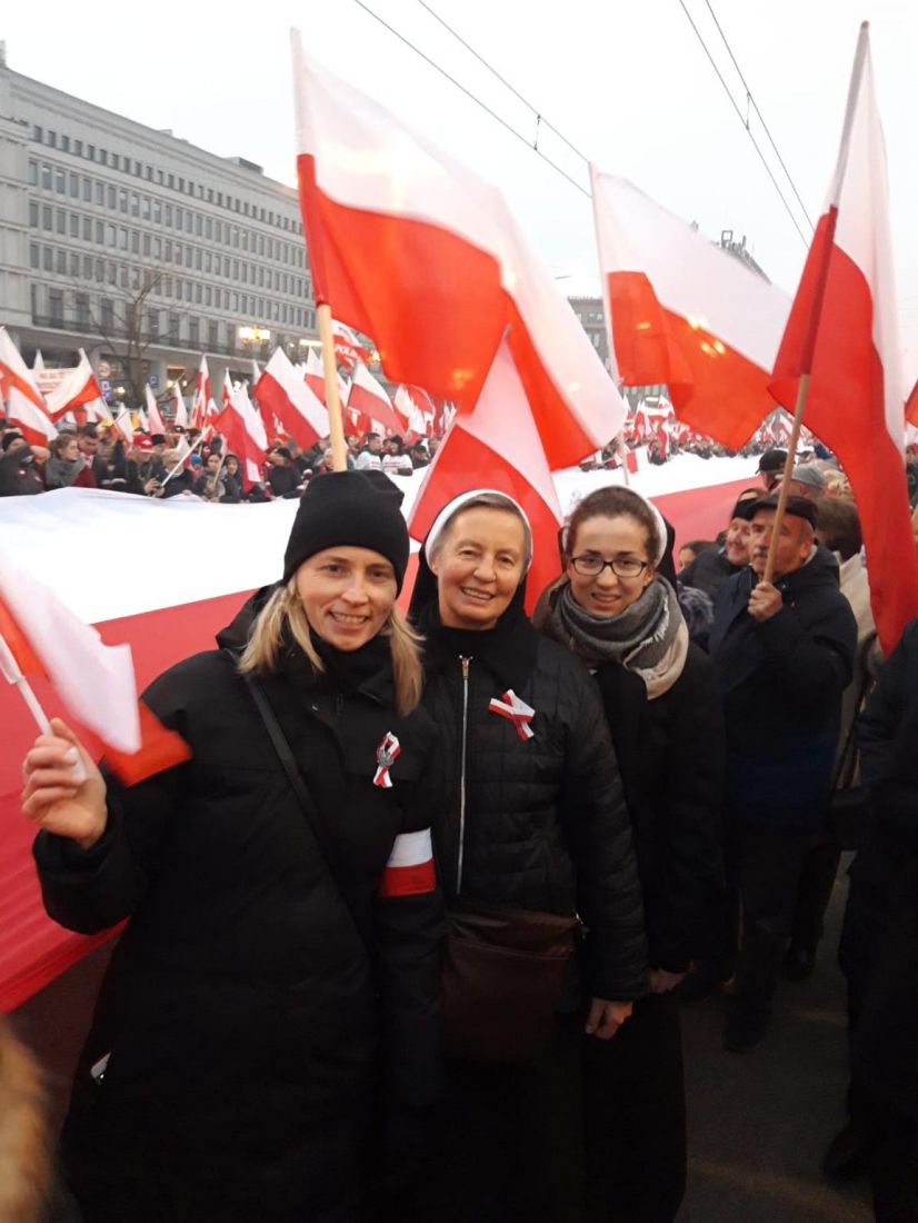11 listopada w setną rocznicę odzyskania Niepodległości wraz z rodakami w Polsce i zagranicą uczciłyśmy modlitwą i świętowaniem. Już w sobotę podczas adoracji dziękowałyśmy Bogu za dar Niepoległej Ojczyzny, za wielkich Polaków, którzy walczyli o wolność i oddali swe życie, jak również prosiłyśmy Boga o pomyślność na przyszłość. W sam dzień uroczystości włączyłyśmy się do akcji "Niepodległa do Hymnu", niektóre z nas wzięły udział w wydarzeniach organizowanych w miejscach, gdzie posługujemy, Marszu Niepodległości w Warszawie, a w Domu Prowincjalnym w Orliku wysłuchałyśmy pięknego koncertu, przygotowanego przez S. Michalinę Brożyńską przy współudziale muzyków z Malborka. To dla Ciebie Polsko!