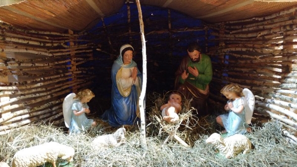 Z modlitwą przy w żłobku Bożej Dzieciny, który w tym roku jest wykonany z drzewa po sierpniowej nawałnicy życzą