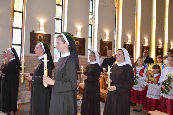 Po homilii, nowicjuszki: S. Serafina Ligocka i S. Aniela Gomółka na ręce Przełożonej Prowincjalnej S. Mirony Turzyńskiej złożyły swe pierwsze śluby zakonne: posłuszeństwa, ubóstwa i czystości, rozpoczynając kolejny etap formacji tzw. juniorat.