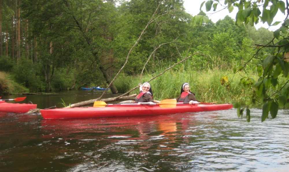 Czas ten wypełniony był po brzegi konferencjami i chwilami przeznaczonymi na rozważania, skupienie, dzielenie się refleksją, i zwyczajne-niezwyczajne spotkania we wspólnocie Sióstr, w którym był czas i na rozgrywki piłki siatkowej z Siostrami Nowicjuszkami i Postulantkami, i na wspólne ognisko, i na pełne radości zmagania z wiosłami w rękach podczas spływu kajakowego rzeką Wdą. Oczywiście jak co roku nie mogło zabraknąć wspólnego pielgrzymowania w intencji powołań do Sanktuarium Matki Bożej Pocieszenia w Wielu.