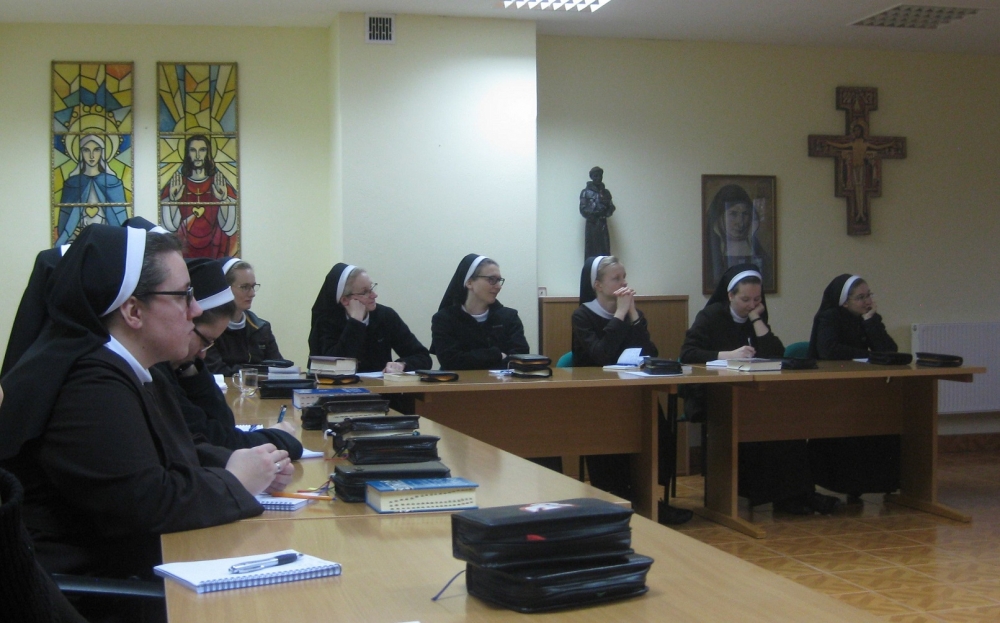 Br. Krzysztof przygotował wykłady mówiące o modlitwie franciszkańskiej, opierając się na czterech najbardziej znanych modlitwach św. Franciszka: modlitwa przed Krucyfiksem w San Damiano (Najwyższy Chwalebny Boże”, modlitwa uwielbienia Pana w każdym Kościele (Wielbimy Cię), Antyfona „Święta Maryjo Dziewico” i błogosławieństwo dla brata Leona. Nie zabrakło również codziennej wspólnej Eucharystii, adoracji i specjalnie przygotowanych medytacji opartych na Słowie Bożym Starego i Nowego Testamentu oraz odpowiadania w grupach na pytania, które miały je wprowadzi w każdy wykład. Na jednej z rekreacji „pożegnałyśmy” najstarszą z nas s. Marię Harokhavik, która latem złoży śluby wieczyste. Życzymy jej dobrego czasu przygotowania się do tego ważnego wydarzenia i wytrwałości w powołaniu. Zakończeniem junioratu było spotkaniem z przełożoną prowincjalną, s. Mironą, a następnie było świętowanie imienin mistrzyni junioratu – s. Jany Łącz.