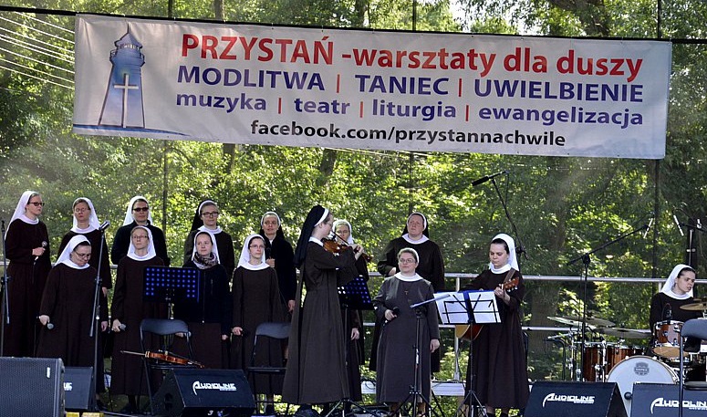 Po południu rozpoczęła na Przystani Jana III Sobieskiego Koronka do Miłosierdzia Bożego - tutaj można posłuchać, którą prowadziły Siostry Franciszkanki z Orlika. Następnie trwała godzina świadectw osób, które mówiły o cennym darze czystości, ale też i o walce oraz upadkach, wskazując na wiele zagrożeń płynących z dzisiejszego świata. O konsekrowanej radzie czystości mówiła S. Edyta Gilmajster. W czasie nabożeństwa pokutnego ukazano oczyszczającą moc Sakramentu Pokuty. Bardzo wielu młodych przystąpiło do spowiedzi św. W trakcie celebracji pokutnej, Siostry Franciszkanki towarzyszyły młodym swym śpiewem i radosnym świadectwem. Jedna z wykonanych piosenek przez Siostry Franciszkanki- kliknij.