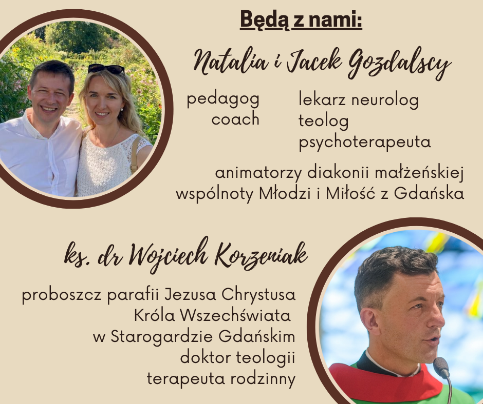 W spotkaniu weźmie udział także ks. dr Wojciech Korzeniak, proboszcz parafii Jezusa Chrystusa Króla Wszechświata w Starogardzie Gdańskim i terapeuta rodzinny, swoim doświadczeniem od lat towarzyszący małżeństwom naszej diecezji.