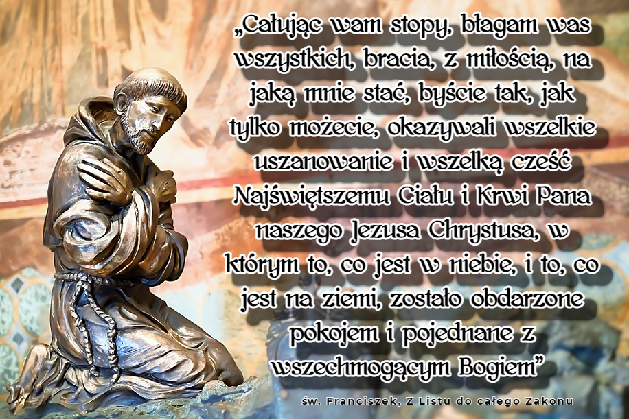 Święty z Asyżu w wielu swoich pismach nawiązywał do tej tak drogiej mu rzeczywistości. Poniżej kilka fragmentów jego słów płynących z miłości do Najświętszego Sakramentu.