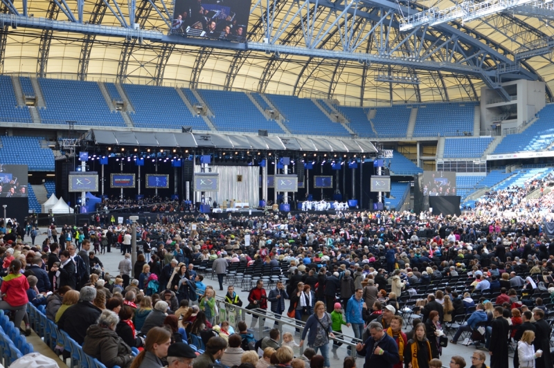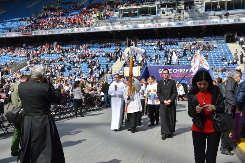 Wasza tak liczna i gorliwa obecność ukazuje, że Pan żyje i działa, że Chrzest Polski, który miał miejsce 1050 lat temu, nadal wydaje swoje niezliczone owoce łaski - powiedział w homilii legat papieski kard. Pietro Parolin podczas mszy na poznańskim stadionie. W uroczystościach wzięło udział ok. 35 tys. osób.